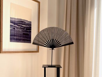 For this creation, Duvelleroy called upon a master fan-maker who is also a painter to create a unique painted gesture on dark grey silk.