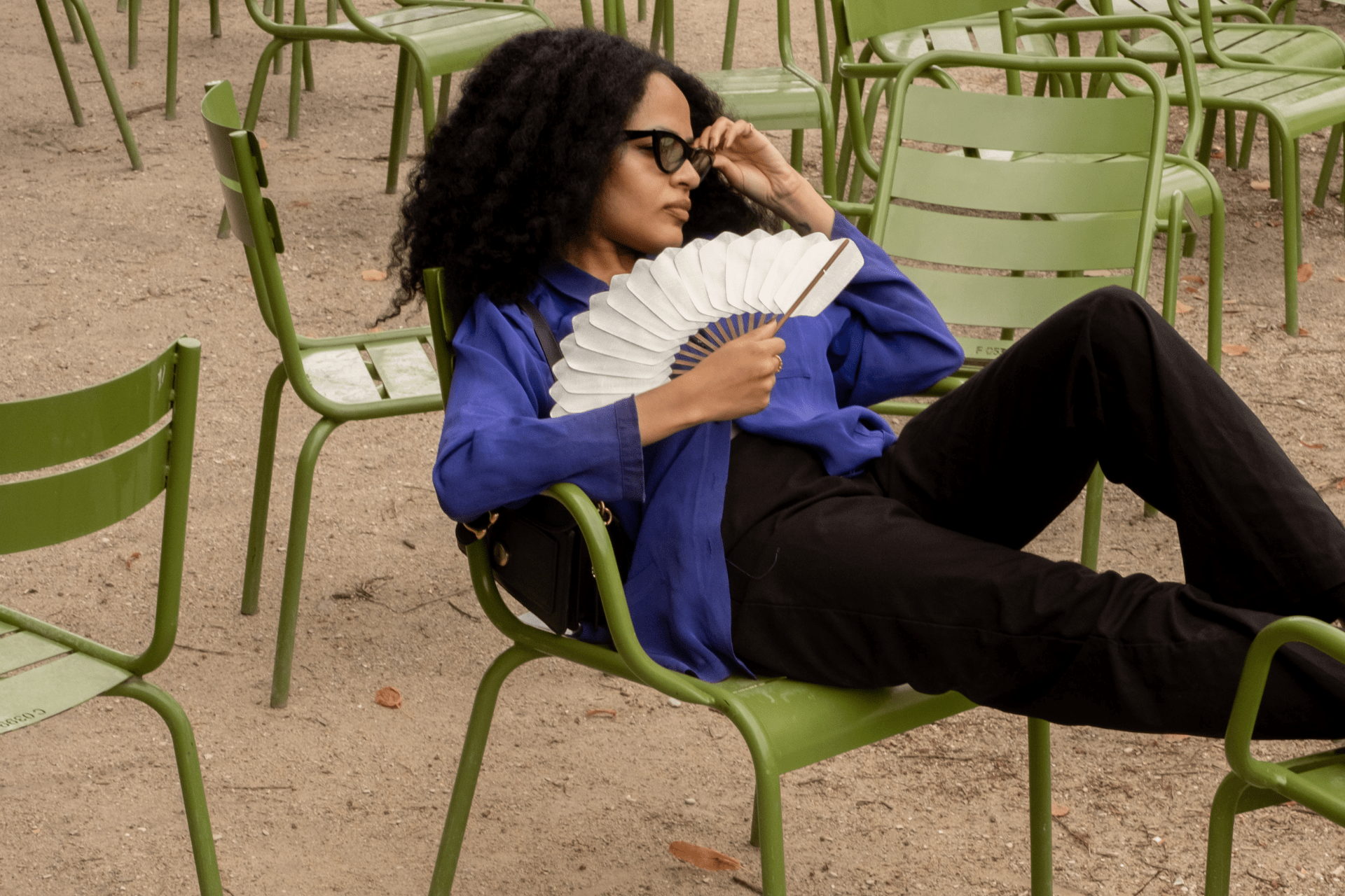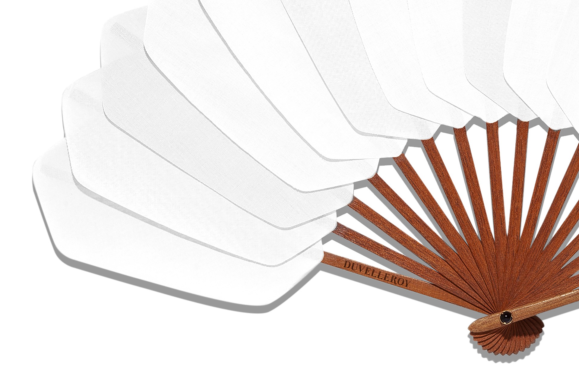 La forme « Palmette » désigne un éventail non plissé, dont chaque brin est relié au suivant par un fil. Dans la tradition de la Maison originelle, ces éventails incarnaient le savoir-faire Couture à la française. A travers ce modèle, Duvelleroy réinterprète un classique.