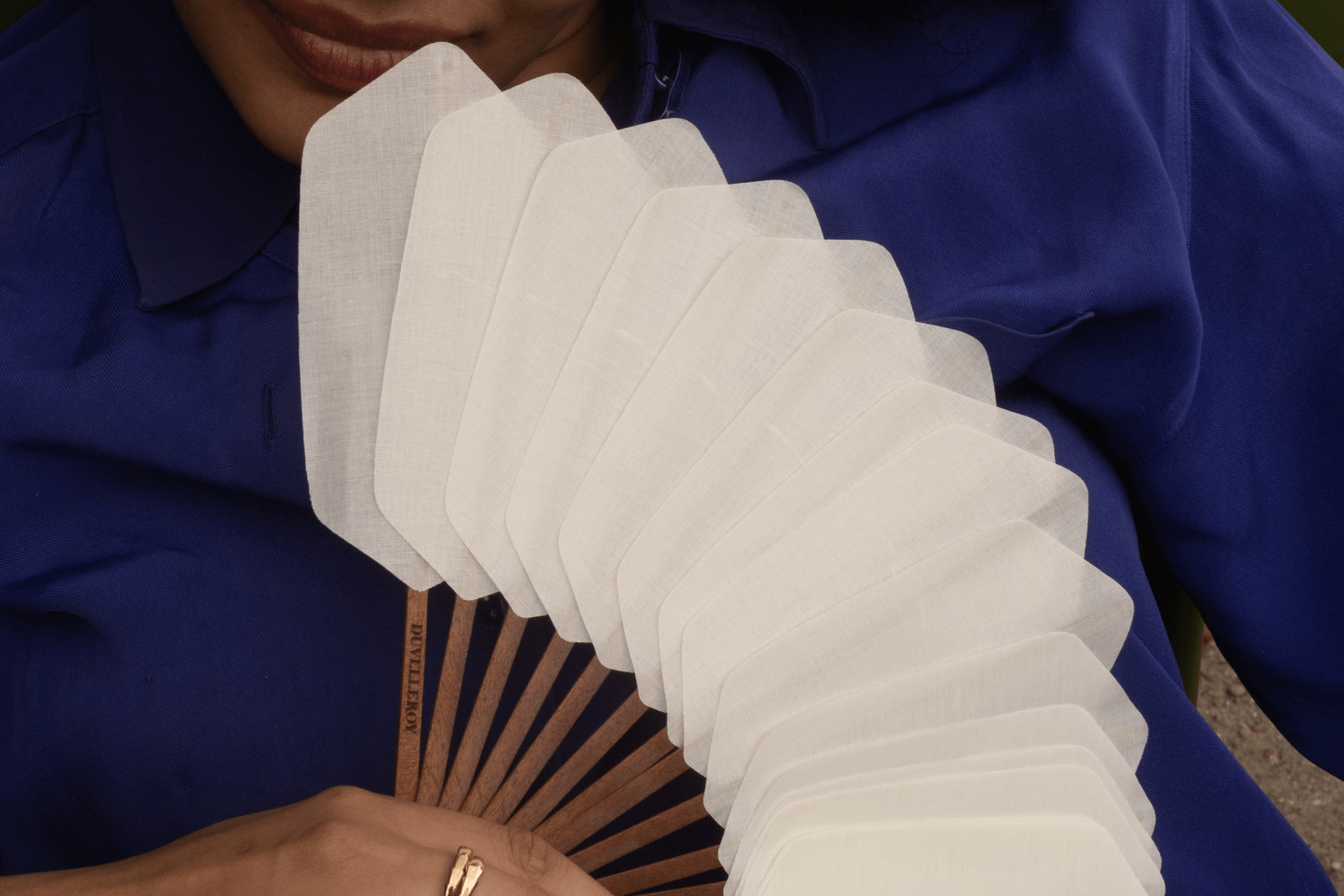 Éventail Prêt-à-porter, Forme Palmettes, Coton, Monture bois de Bokapi