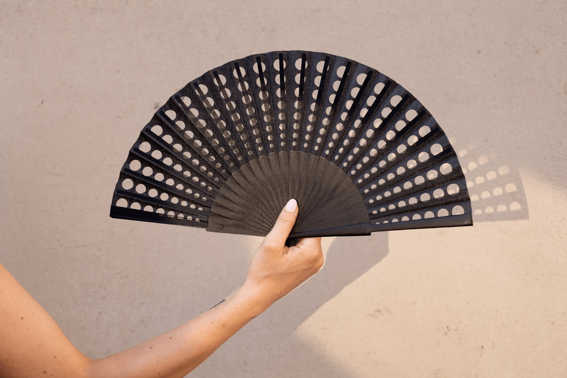 Éventail Prêt-à-porter, Coton perforé, Monture bois de Sycomore