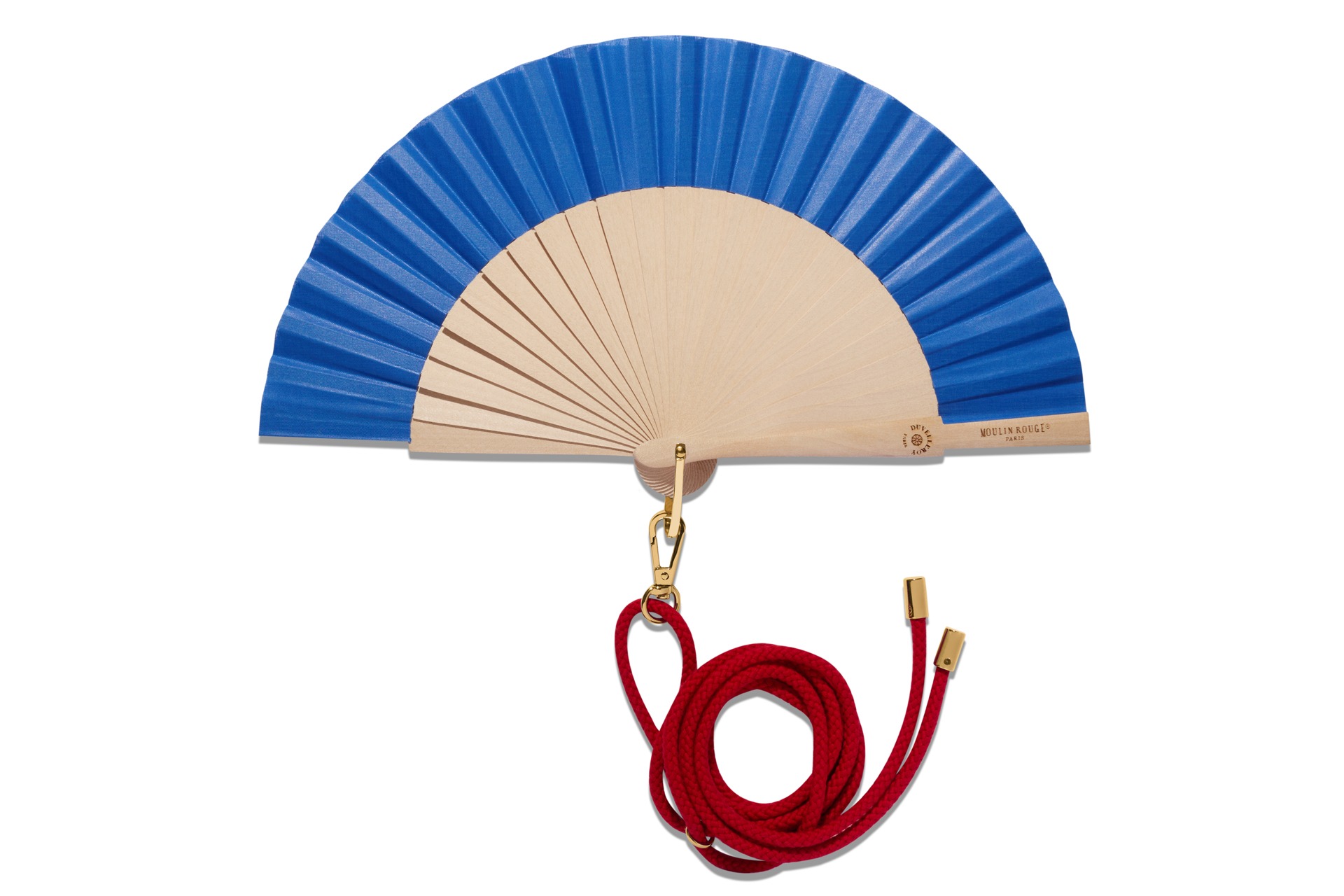 In collaboration with the Moulin Rouge®, Duvelleroy presents a limited edition in blue canvas with a red cord, available exclusively at Duvelleroy boutiques and at the Moulin Rouge.
